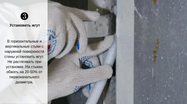 - В зонах пересечения вертикальных и горизонтальных стыков расстояние между стеной и прокладкой должно составлять от 5 до 15 миллиметров.