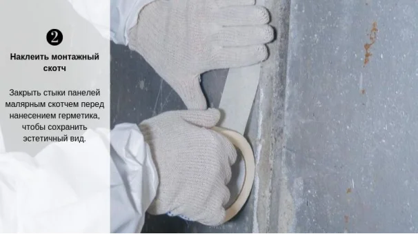 Перед герметизацией стыков грани панелей очистить от пыли, грязи, остатков старых строительных материалов. Зимой очистить поверхность от наледи и снега.